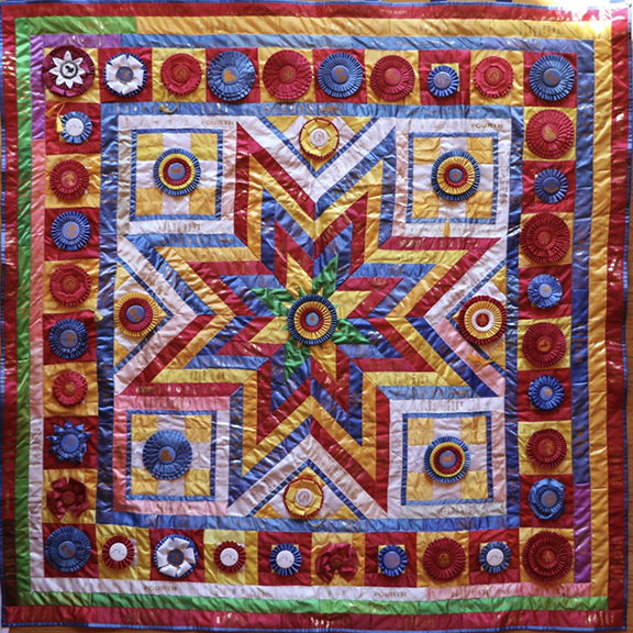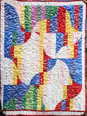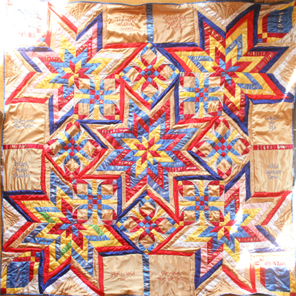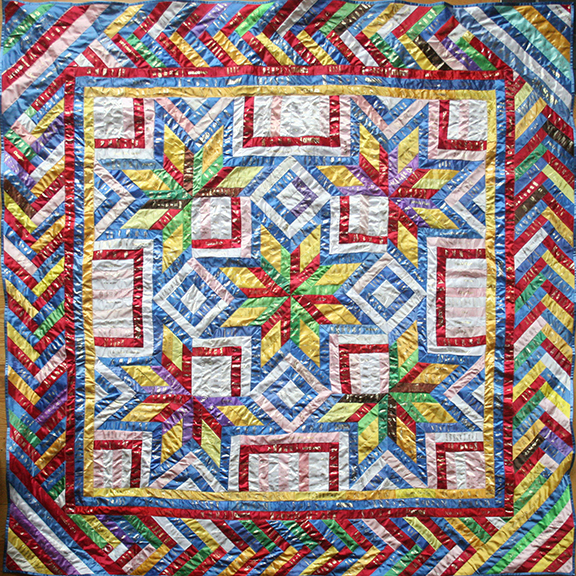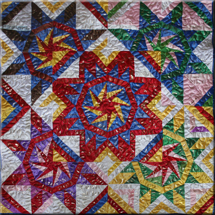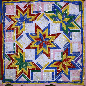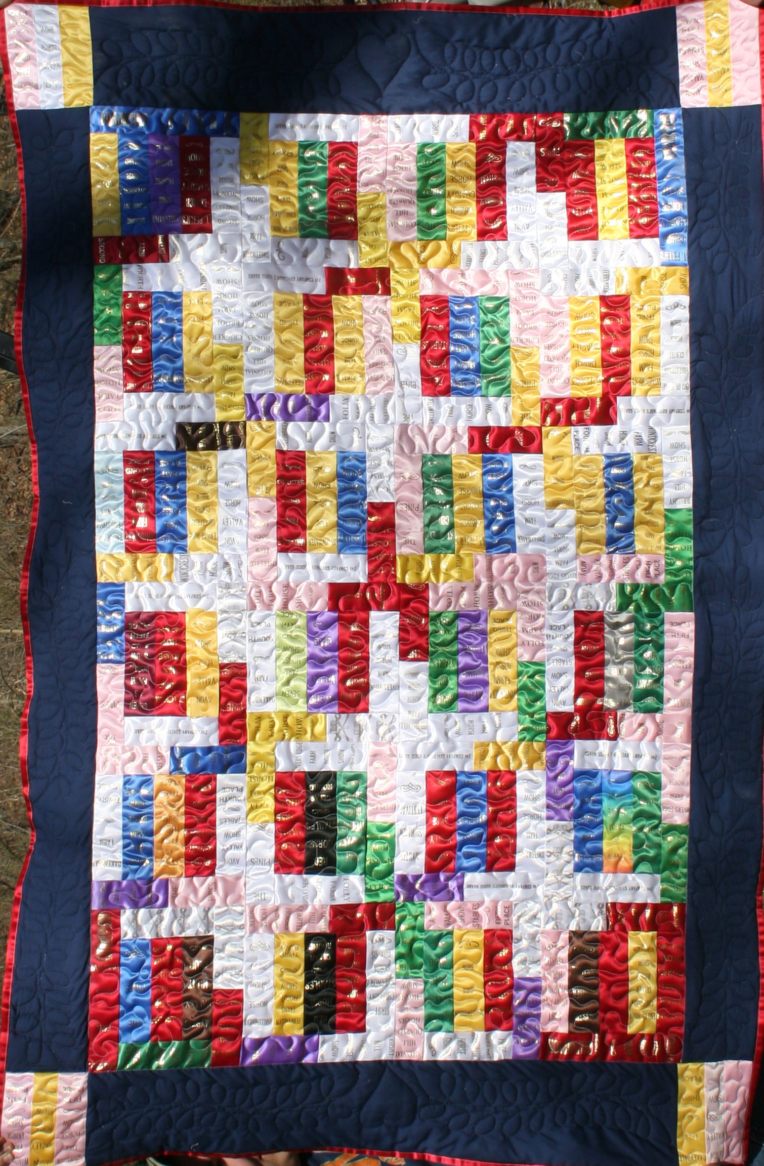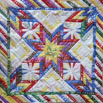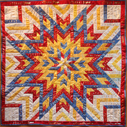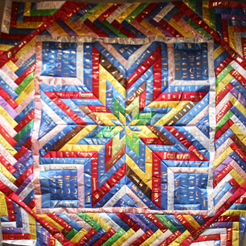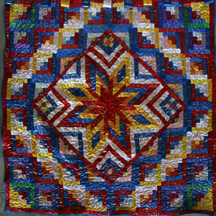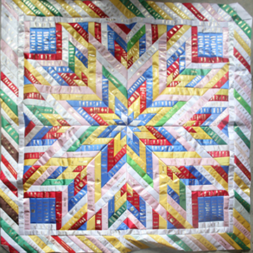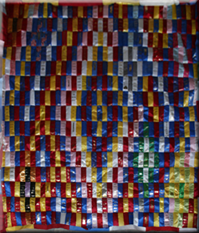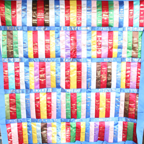 Extra-Large Wall-Hangings & Quilts These quilts & wall-hangings range in number of ribbons used from those where I have "stretched" as few as 200 ribbons into ~36sqft to those where I have packed more ribbons than you can imagine into ~50sqft. *Click any photo to view a larger version* |