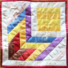 Quilted and bound with custom ribbon binding, just like my quilts and wall-hangings! They finish at ~20". Please send 20-30 ribbons. < Star $65 Simple $50 > * In many cases it is possible to make a wall-hanging rather than a pillow. Especially when the collection of ribbons is oversized (with ribbons greater than 20" long). Please have a look at the Frameable Wall-Hangings page for more options* **Pillow orders are accepted on pre-payment only **
